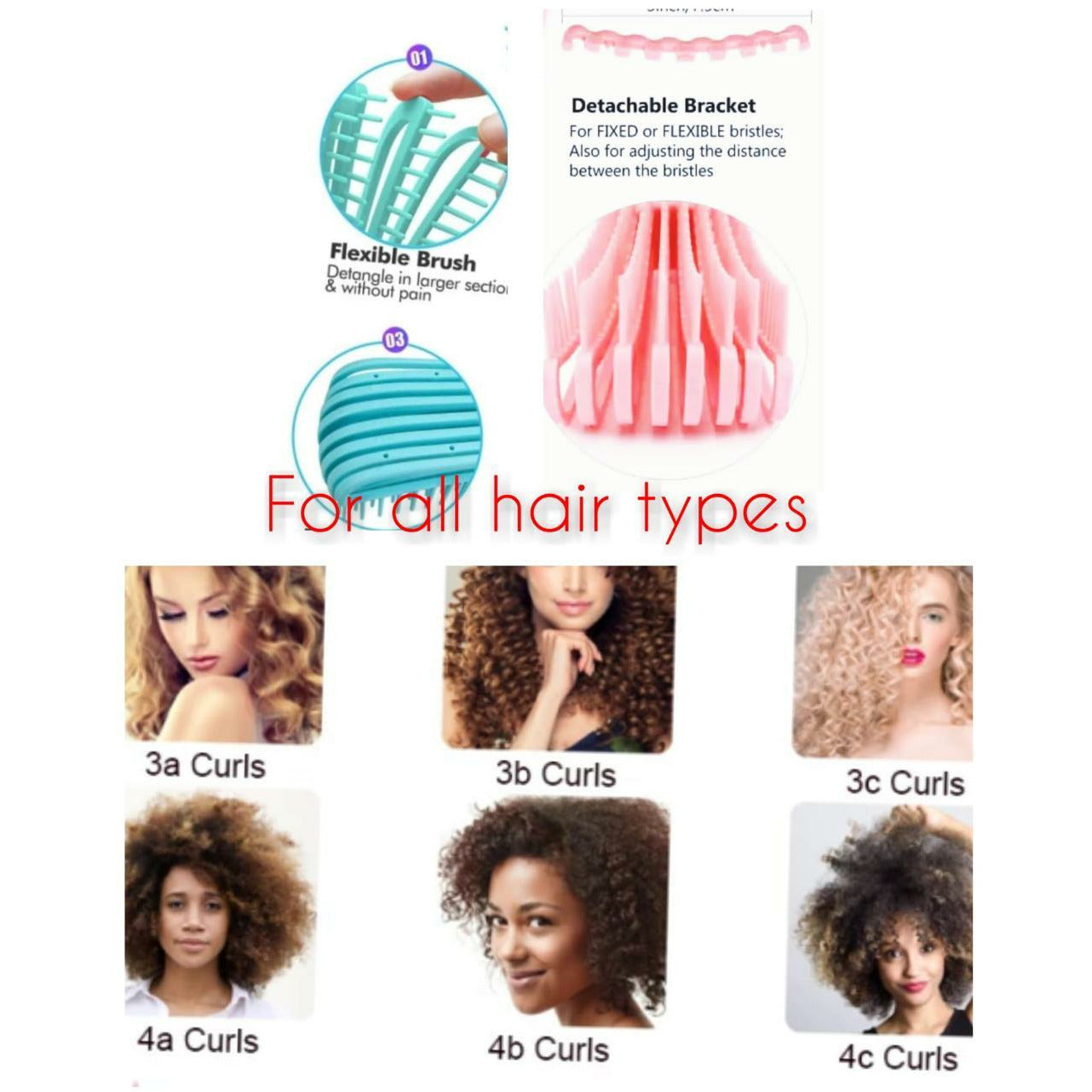 Easy to detangle, The flexible brush heads with separate bristles are specially designed to detangle curly, wavy, curly, kinky